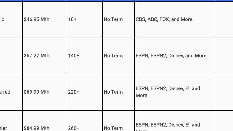 For clarity on what each provider offers regarding channel lineups and content options in relation to pricing structures mentioned earlier, refer below:
